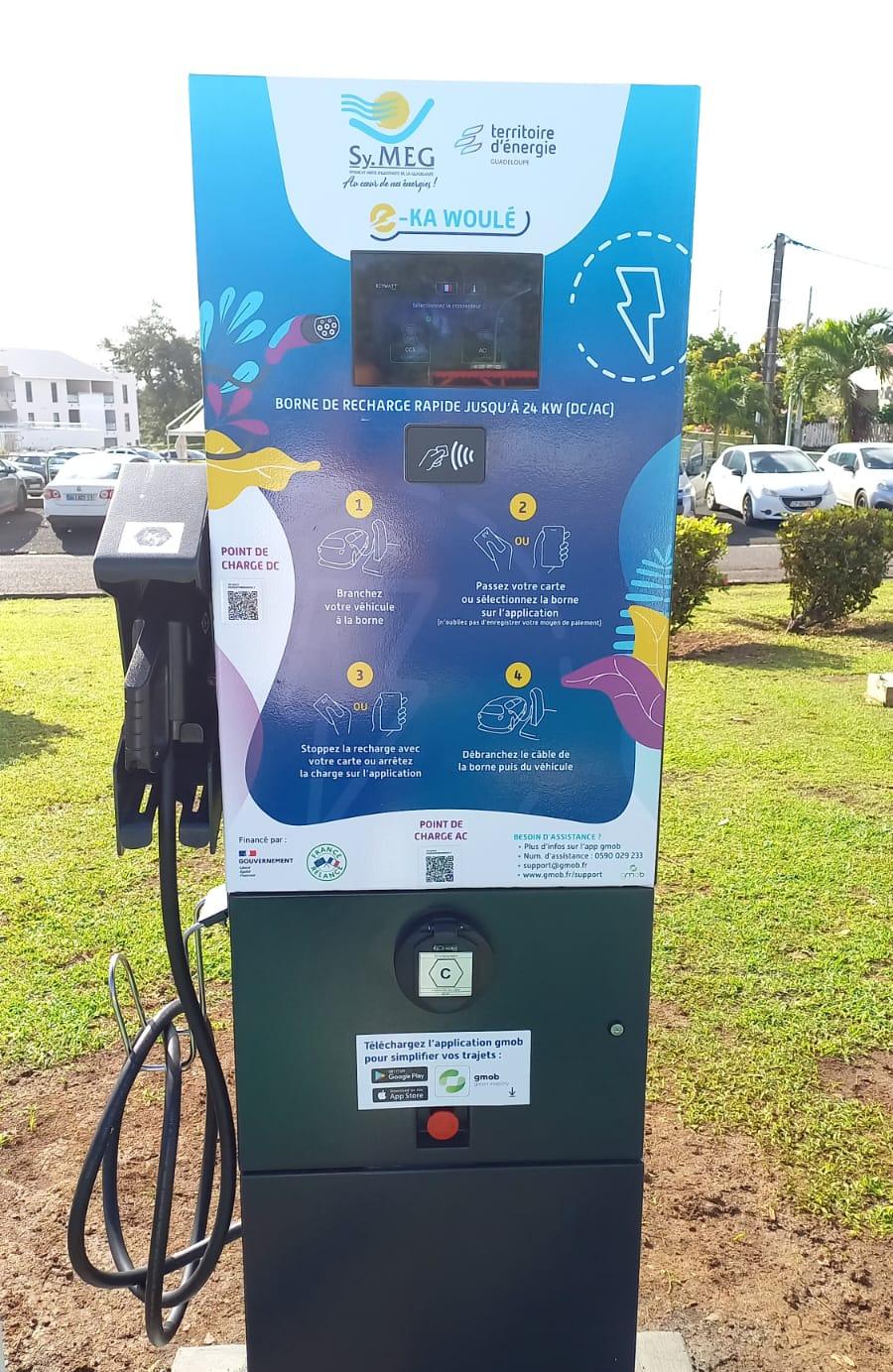 Depuis 2022, le Sy.MEG, en tant qu’acteur public de l’énergie, a pris la décision stratégique d’installer des bornes de recharge pour véhicules électriques. Il assure la coordination, l’entretien et le déploiement de ce réseau afin de mailler efficacement la Guadeloupe. L’exploitation des stations est déléguée à Gmob, un prestataire choisi par le syndicat.